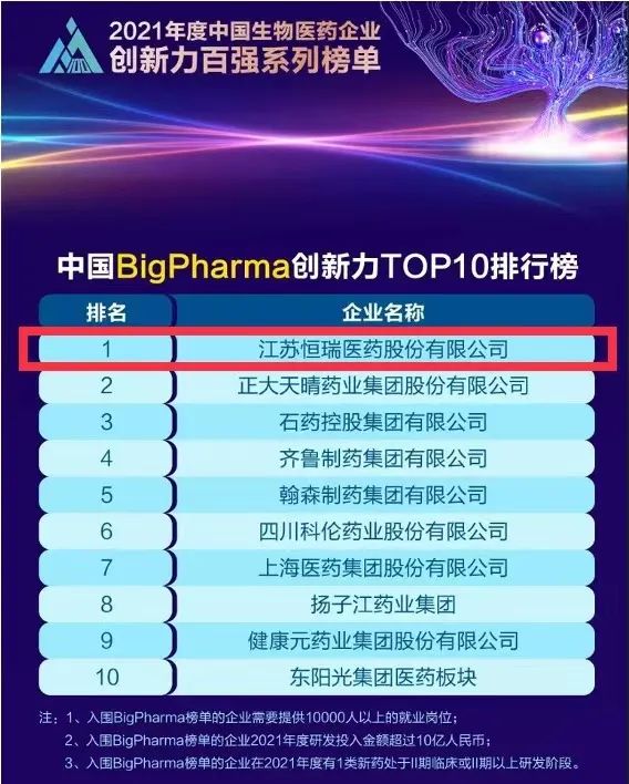 蝉联榜首!AG百家乐官网医药再次登顶“中国BigPharma企业创新力TOP10排行榜”