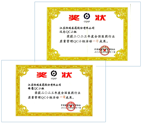 近日,第44次全国医药行业质量管理(QC)小组成果发表交流在甘肃兰州举行。会上,AG百家乐官网医药远志QC小组、雏鹰QC小组荣获2023年度全国医药行业质量管理QC小组活动一等奖。